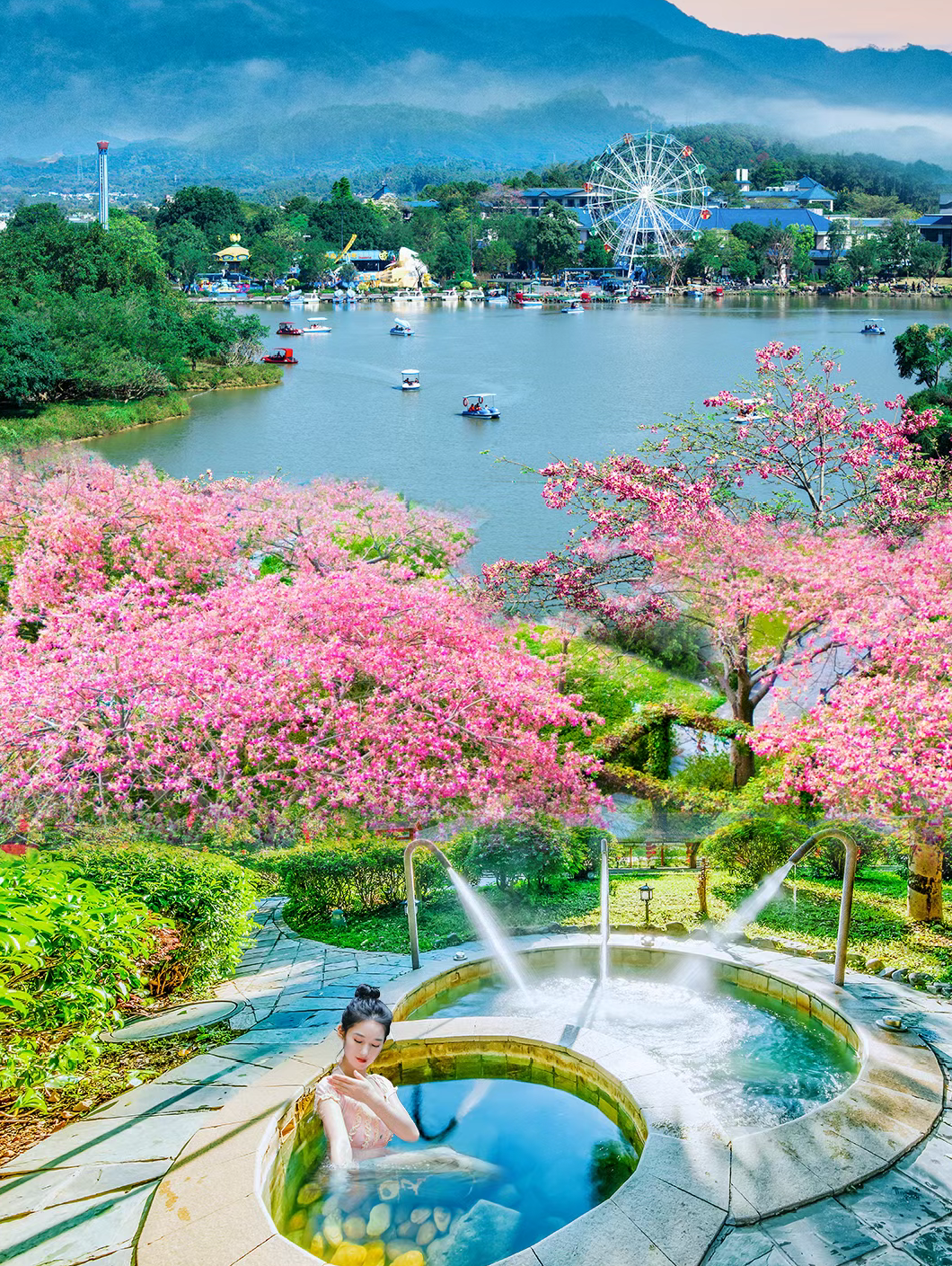 温泉池五十余个,错落分布在山水林间