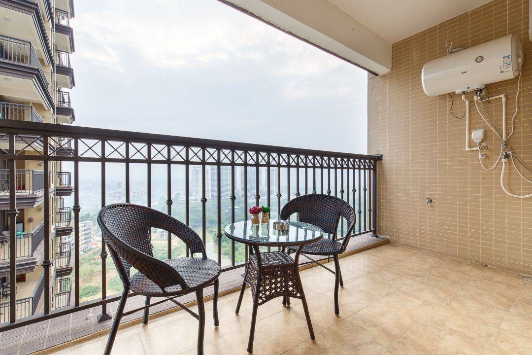 在阳台望着山景,远离都市压力,