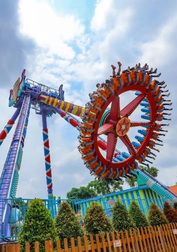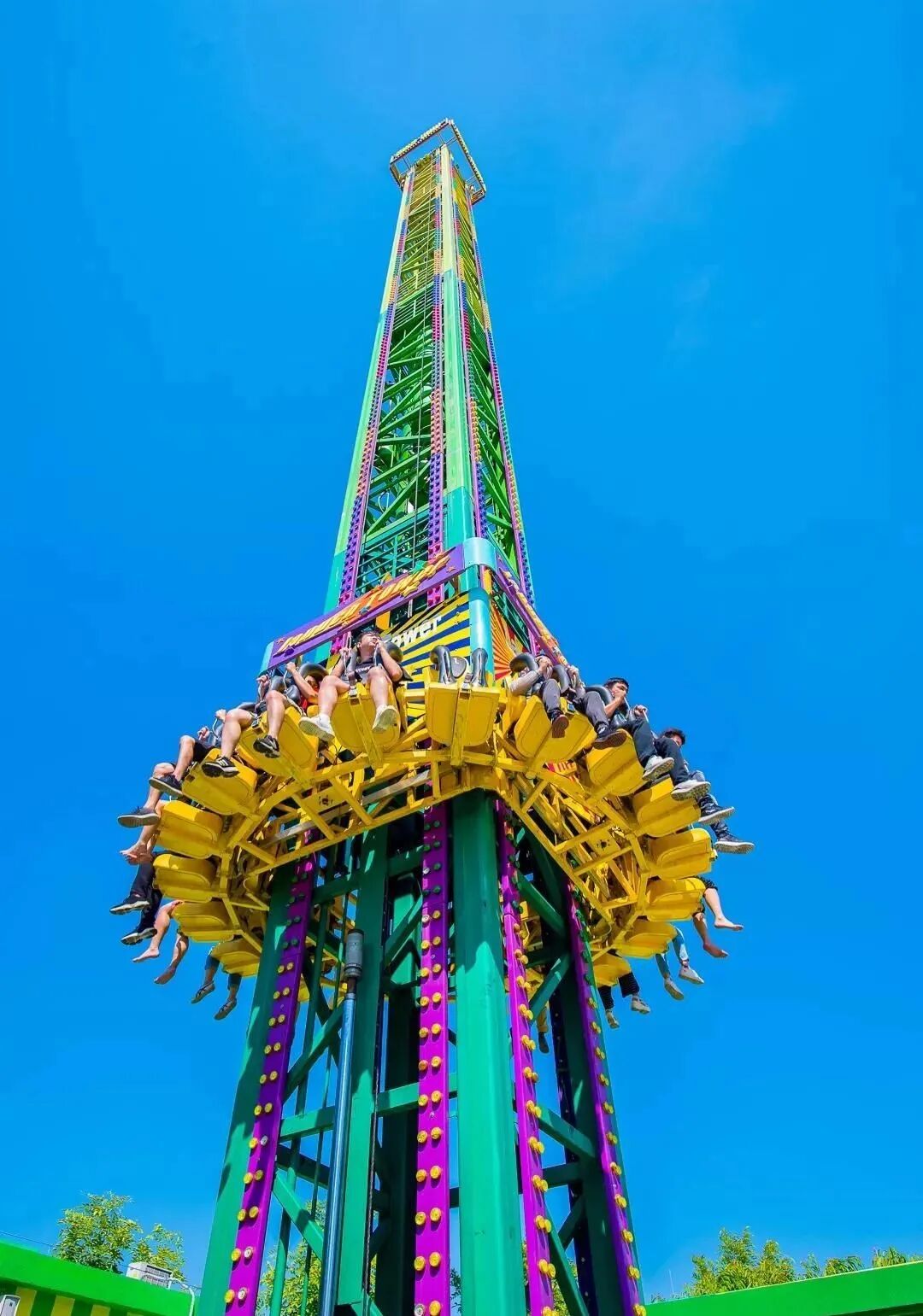 最高时速75公里/小时,最大摆幅超过120度,带你飞上24米高空,惊心动魄。