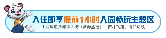 1、购买海洋王国住房套票,均可尊享提前至少1小时(即上午9点)入园,抢先体验鲸鲨馆及海牛馆两大展馆,鹦鹉过山车及海底互动船等三大游乐设备,海洋瞭望塔等两大攀爬项目,以及特色餐厅与商店等;具体开园时间以园区当日公告为准。 备注:海洋王国常规营业时间为11:00-19:00(最晚18点入园),营业时间如有调整,以现场公告为准。凭入住人的有效证件原件先在酒店前台办理入住手续后在酒店前台领取或绑定景区门票。