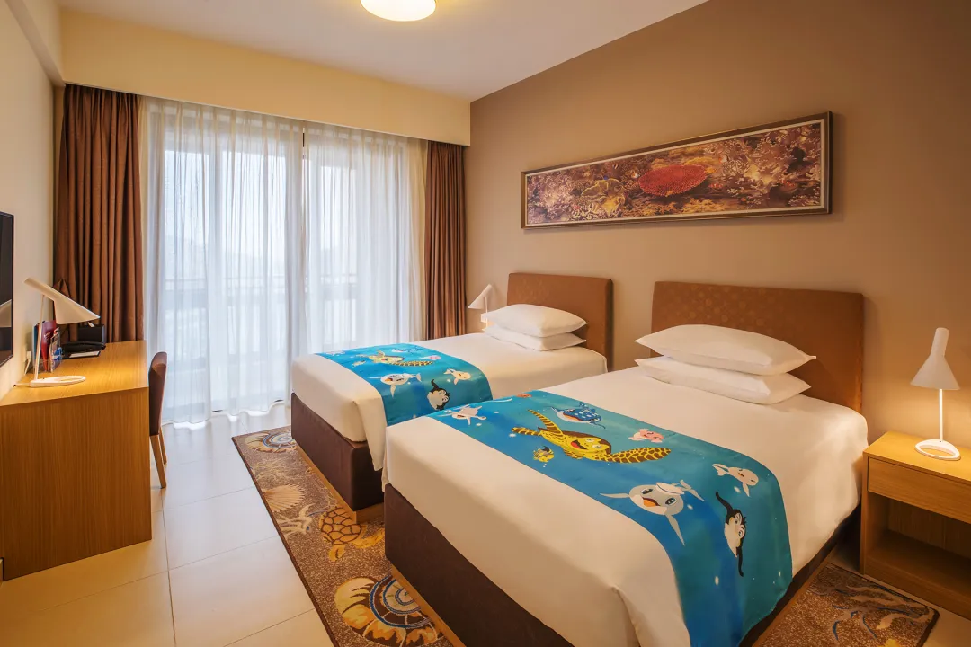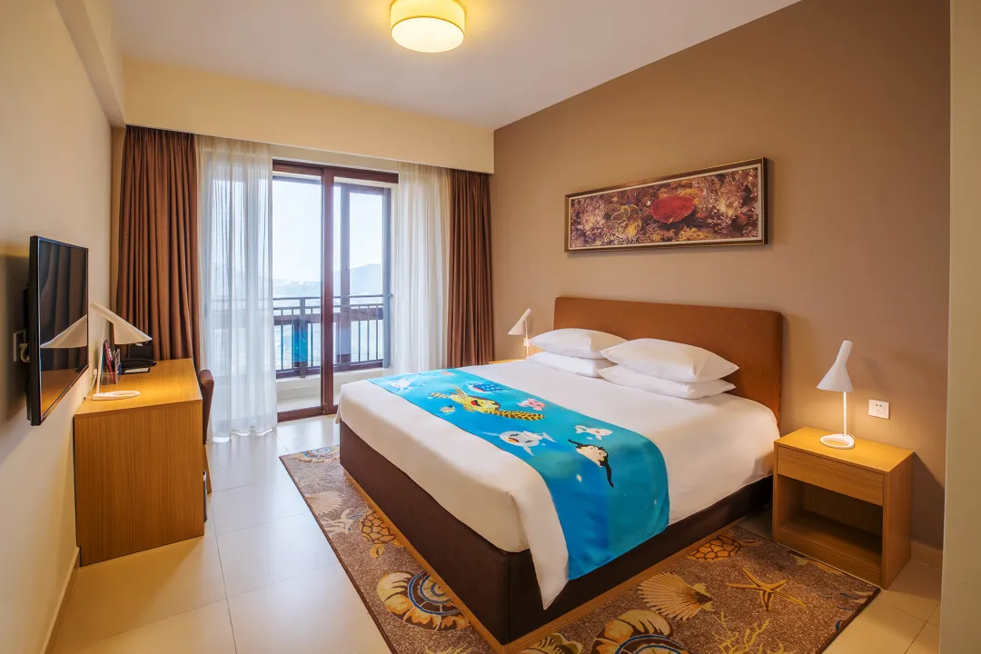可爱的海龟壁画、各种海龟造型的装饰品客房营造出独特的欢乐海洋气氛醉美景色就在房间落地窗外,尽享开阔视野