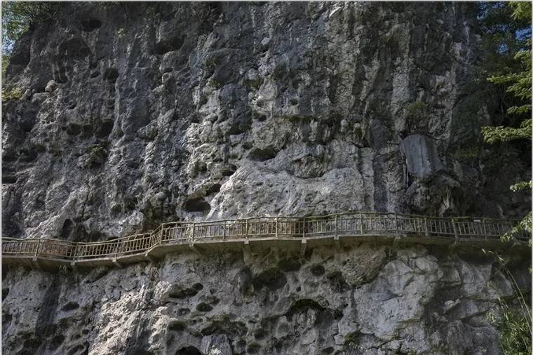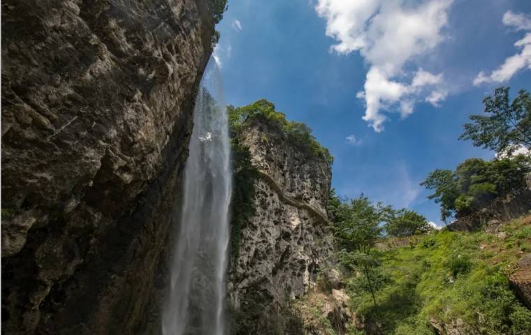 穿过观音洞映入眼帘的是空中栈道-大瀑布