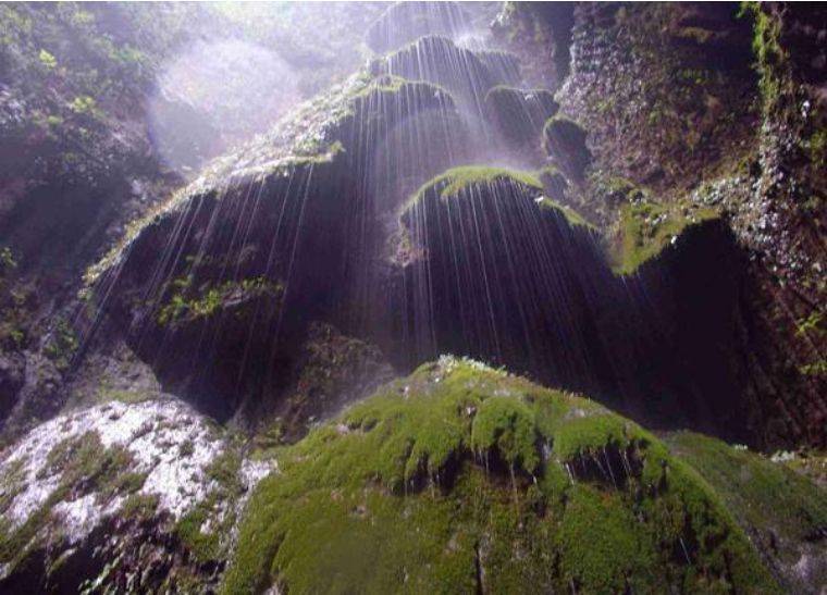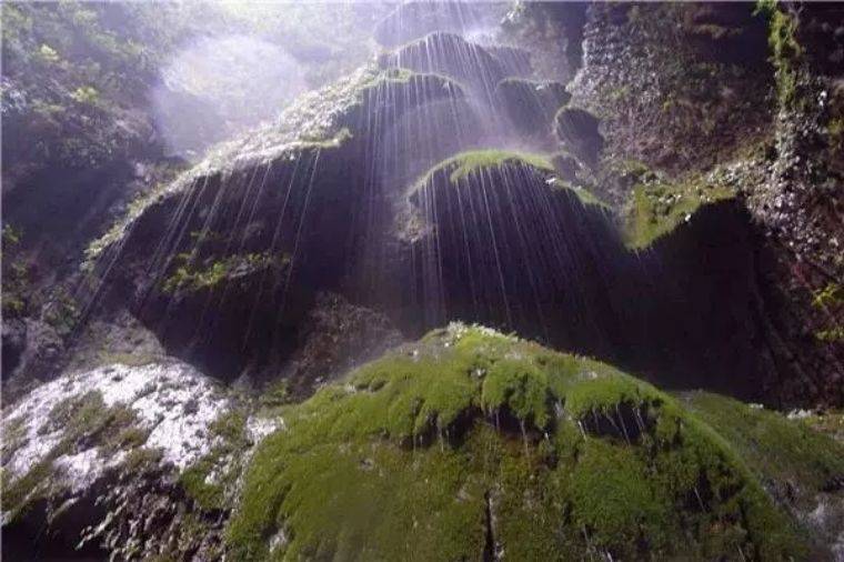 就像挂在山体的珍珠。其中“玉龙潭”为之著名