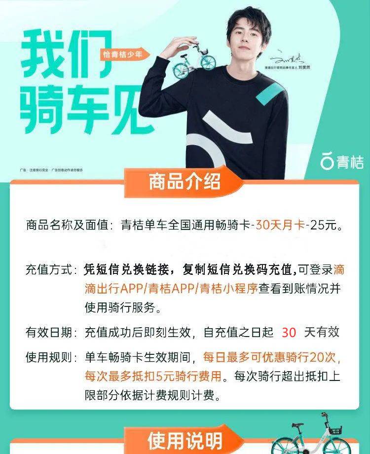 2.购买前请确认所在城市是否开通青桔单车服务(可登陆青桔APP/青桔小程序查看),并确认是否在可用区域内;