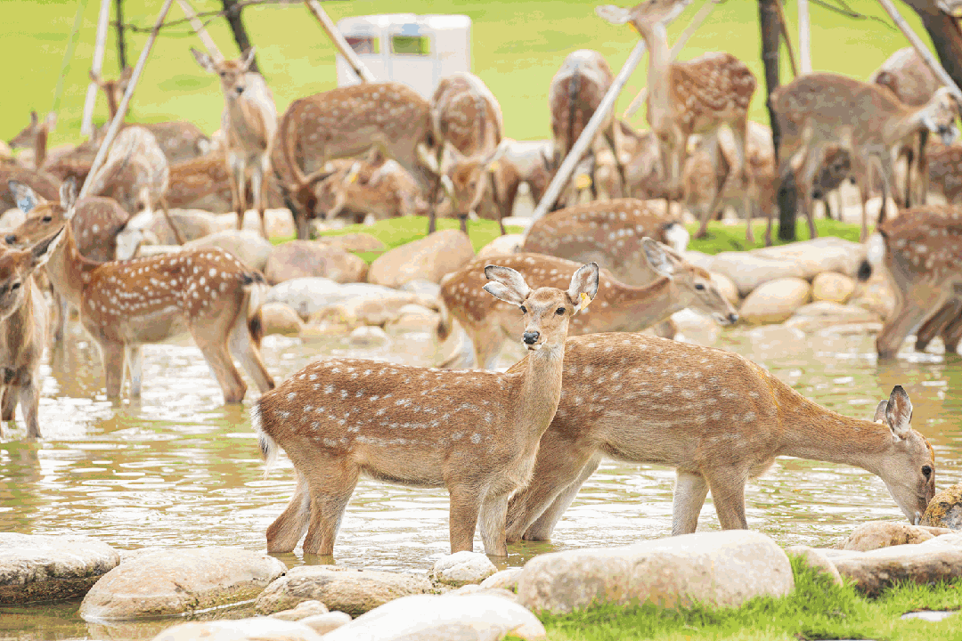 三十多只梅花鹿在此肆意奔跑