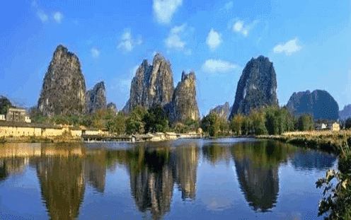 在这里,秀丽的峰林直插蓝天,颇为震撼