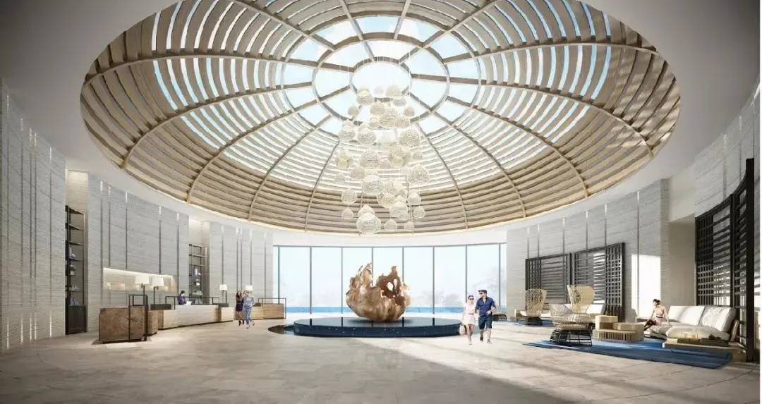 酒店呈弧形包围结构