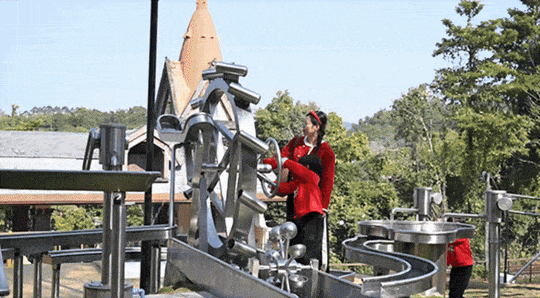 还有摇晃吊桥、狭窄平衡木、高难度攀爬网等